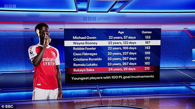 萨卡加入了一份星光熠熠的名单,只有欧文、鲁尼、罗比-福勒、法布雷加斯、C罗和卢卡库在更年轻的年龄就达成了这一里程碑。